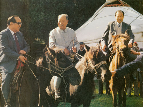 347.彭真1988.9于新疆天山脚下骑马,86岁高龄英姿不减当年。