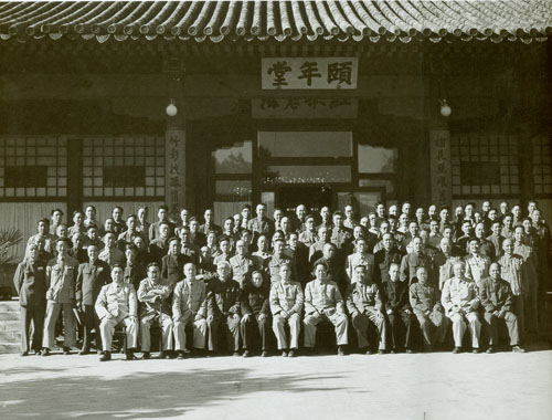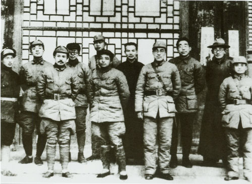 45.任弼时1937.1与红军将领在陕西三原县十七路军第十七师司令部同友军及地方人士之合影。