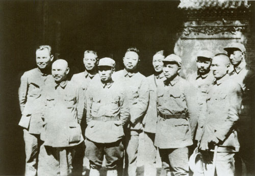 48.任弼时1937.5与国共谈判期间,在叶剑英、陈赓陪同下到陕西泾阳云阳镇红军前线考察的国民党中央考察团合影。前排:右二为彭德怀,右三为陈赓;后排:右一为徐向前,右二为任弼时,右六为叶剑英。