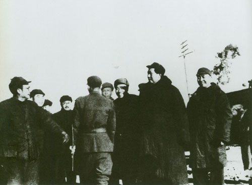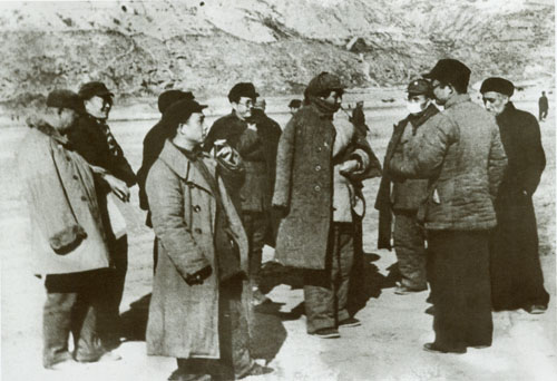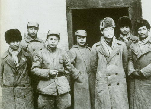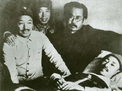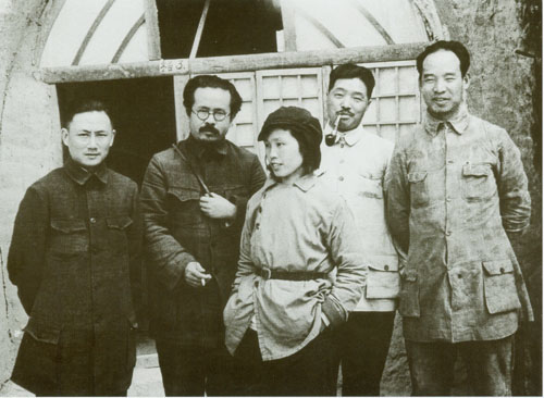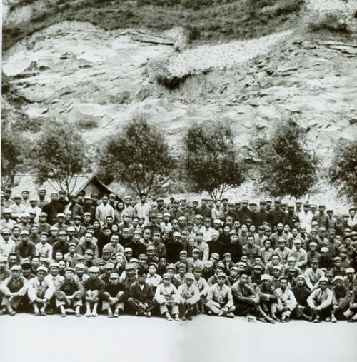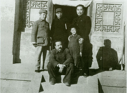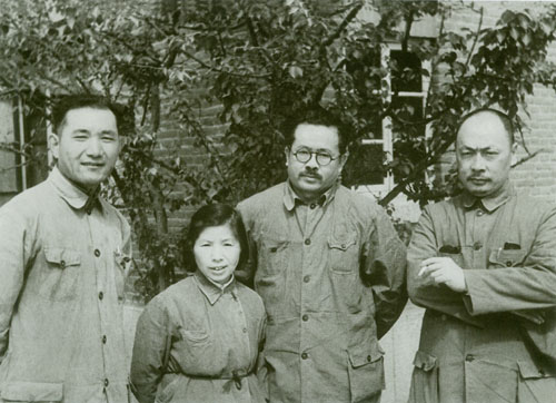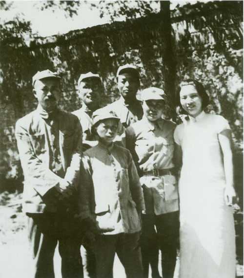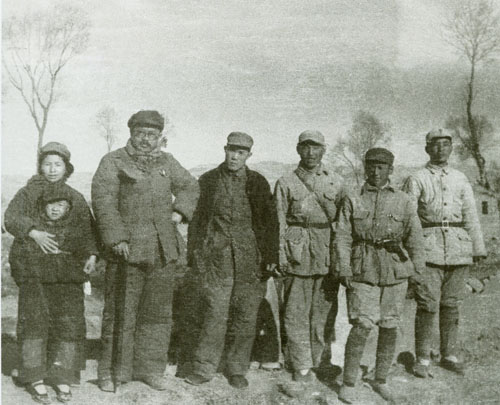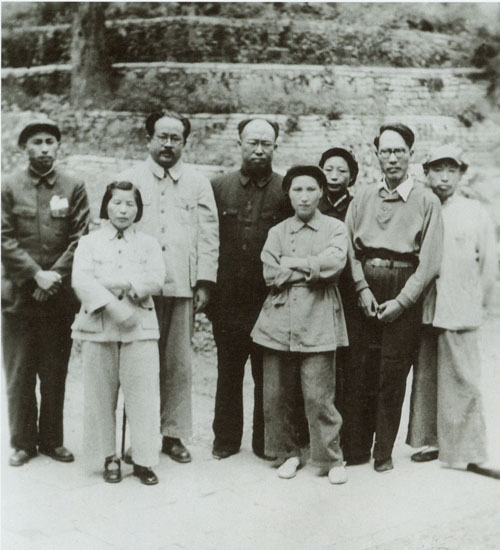 70.任弼时1938年初在山西洪洞马牧村。左三为任弼时,左四为丁玲。