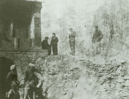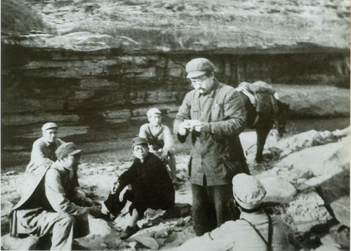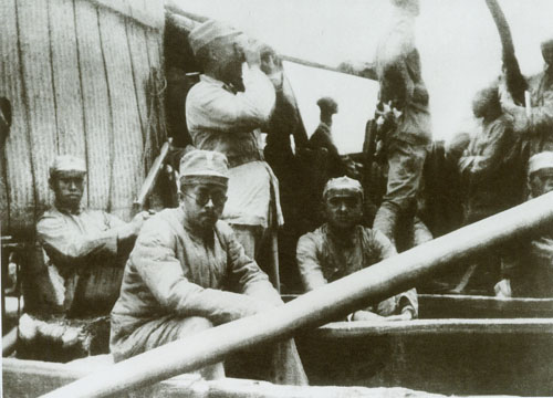 53.任弼时1937.9.15与八路军总部在陕西韩城县芝川镇东渡黄河开赴山西抗日前线。站立者右起:朱德、任弼时、左权等。