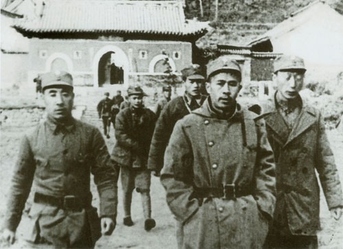 60.任弼时1937年秋在山西抗战前线。前排左起:林彪、任弼时、聂荣臻。