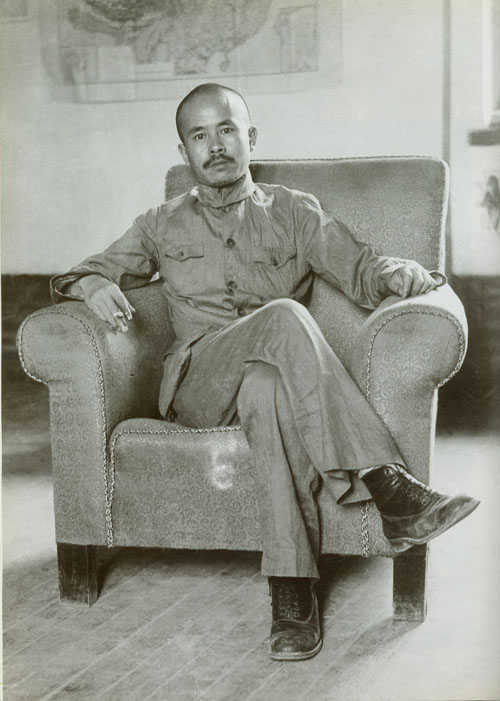 62.任弼时1937年秋在山西临汾八路军总部半身坐姿照。