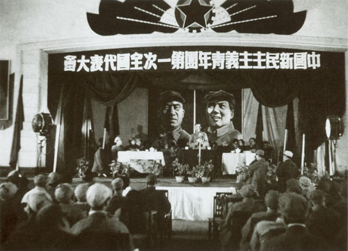 258.任弼时1949.4.11抱病在中国新民主主义青年团第一次全国代表大会上作政治报告,因身体不支,报告作了一半,不得不让人代为宣读。