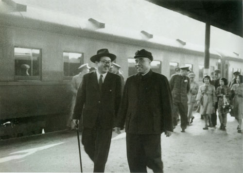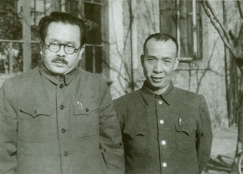 196.任弼时1949年初与陈毅在石家庄。