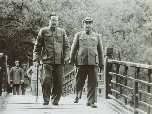 211.任弼时1949年秋与朱德在玉泉山散步。