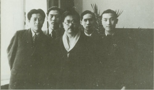 227.任弼时1950.1在苏联巴拉维赫疗养院与来看望他的中国留苏学生及工作人员合影。左起:朱子奇、萧永定、任弼时、叶正明、任湘。