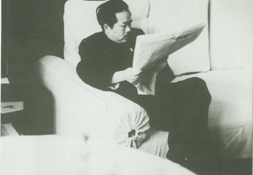 228.任弼时1950.1在苏联巴拉维赫疗养院阅读俄文报纸。