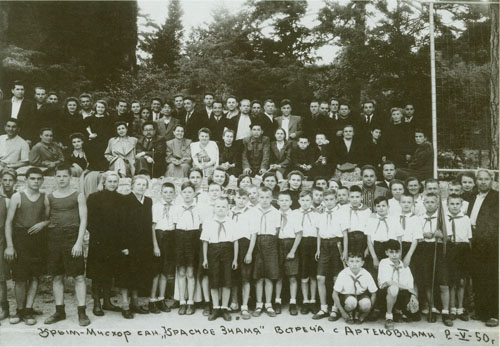 234.任弼时1950年春在苏联黑海疗养院观看球赛后合影。