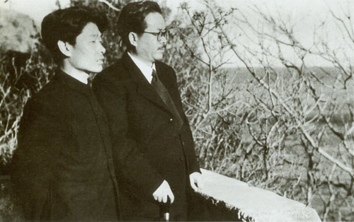 213.任弼时1949年夏与来看望他的许特立在北平玉泉山合影。