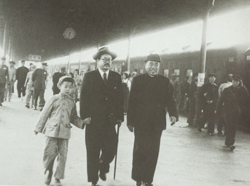 242.任弼时1950.5.28结束在苏联的疗养回国,在北京火车站与夫人陈琮英及子女们团聚。