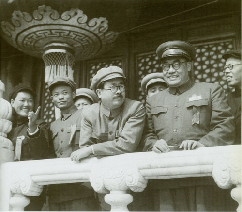 250.任弼时1950.10.l在天安门城楼参加中华人民共和国建国一周年庆典。