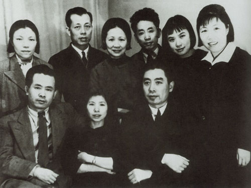 81.任弼时1940年初与周恩来等在莫斯科合影。前排左起:任弼时、陈琮英、周恩来;后排左起:蔡畅、陈郁、杨之华、刘亚楼、孙维世、邓颖超。