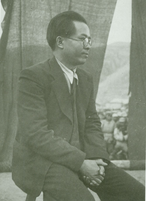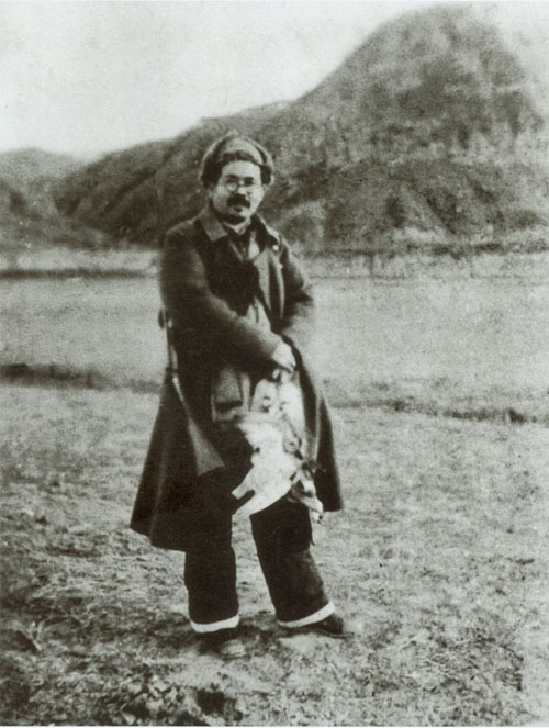 58.任弼时1937年冬在山西抗日前线坐姿照。