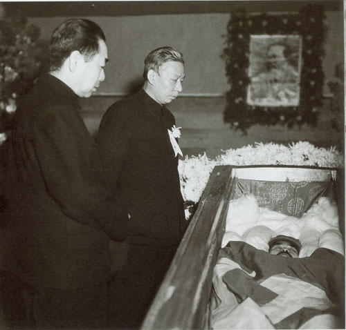 264.刘少奇、周恩来1950.10.28向任弼时遗体告别。