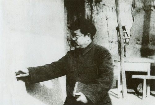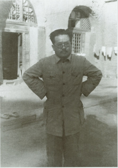 87.任弼时1941年在延安杨家岭窑洞前。