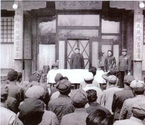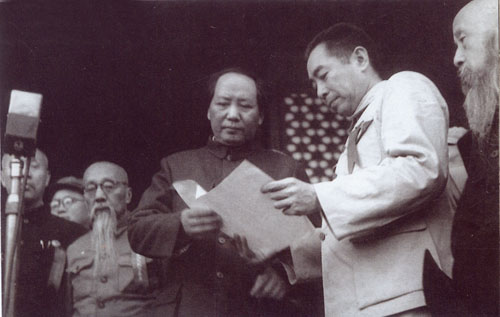 备注:毛泽东生于农民家庭。辛亥革命爆发后在起义的新军中当了半年兵。1914—1918年,在湖南第一师范学校求学。毕业前夕和蔡和森等组织革命团体新民学会。五四运动前后接触和接受马克思主义,1920年,在湖南创建共产主义组织。 1921年7月,出席中国共产党建党的第一次全国代表大会,后任中共湘区委员会书记,领导长沙、安源等地工人运动。1923年,出席中共第三次全国代表大会,被选为中央执行委员,参加中央领导工作。1924年国共合作后,在国民党第一、第二次全国代表大会上都当选为候补中央执行委员,曾在广州任国民党中央宣传部代理部长,主编《政治周报》,主办第六届农民运动讲习所。1926年11月,任中共中央农民运动委员会书记。在1927年8月中共中央紧急会议上,提出“政权是由枪杆子中取得的”,即以革命武装夺取政权的思想,并被选为中央政治局候补委员。会后,到湖南、江西边界领导秋收起义。接着率起义部队上井冈山,发动土地革命,创立第一个农村革命根据地。1928年,同朱德领导的起义部队会师,成立工农革命军(不久改称红军)第四军,任党代表、前敌委员会书记,朱德任军长。开创了以农村包围城市、最后夺取城市和全国政权的道路。1930年8月,红军第一方面军成立,任总政治委员。1931年,中华苏维埃共和国临时政府在江西瑞金成立,被选为主席。1933年,被补选为中共中央政治局委员。1934年10月,参加红一方面军长征。长征途中,1935年1月中共中央政治局在贵州召开扩大会议(即遵义会议),确立了以毛泽东为代表的新的中央领导。10月,中共中央和红一方面军到达陕北,结束长征。抗日战争开始后,以他为首的中共中央坚持统一战线中的独立自主原则,努力发动群众,开展敌后游击战争,建立了许多大块的抗日根据地。这些抗日根据地大部分是在华北山区,但也有的是在河北平原和苏北平原。1938年10月,在中共扩大的六届六中全会上提出“马克思主义中国化”的指导原则。在抗日战争时期,发表《论持久战》、《〈共产党人〉发刊词》、《新民主主义论》等重要著作。1942年,领导全党开展整风运动,纠正主观主义和宗派主义,使全党进一步掌握了马克思列宁主义的普遍真理和中国革命的具体实践相结合的基本方向,为夺取抗日战争和全国革命的胜利奠定了思想基础。1943年3月,被选为中共中央政治局主席。1945年,主持召开中共第七次全国代表大会,作《论联合政府》的报告。毛泽东思想在这次大会上被确定为中共的指导思想。自七届一中全会起至1976年逝世为止,一直担任中共中央主席。 抗日战争胜利后,针对蒋介石企图消灭共产党及其武装力量的现实,提出“针锋相对”的斗争方针。1946年夏蒋介石发动全面内战后,同朱德、周恩来领导中国人民解放军进行积极防御,集中优势兵力,各个歼灭敌人。1947年3月至1948年3月,同周恩来、任弼时转战陕北,指挥西北战场和全国的解放战争。1947年夏,中国人民解放军从战略防御转入战略进攻,在以他为首的党中央领导下,经过辽沈、淮海、平津三大战役和1949年4月渡长江以后的作战,推翻了国民党政府。 1949年10月1日,中华人民共和国建立,当选为中央人民政府主席。以毛泽东为第一代核心的党中央领导中国人民进行了改天换地的社会主义建设,取得了举世瞩目的辉煌成就。在他的晚年虽然犯了严重的错误,但是就其一生来看,他对中国革命的不可争论的功绩远大于他的过失,他的功绩是第一位的,错误是第二位的,仍然受到中国人民的崇敬。主要著作收入《毛泽东选集》(四卷)、《毛泽东文集》(八卷)。